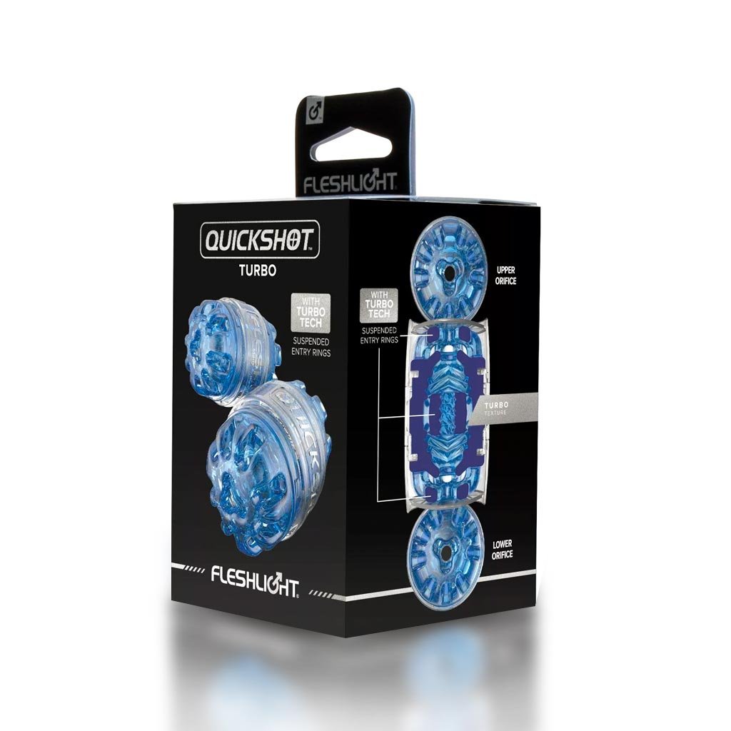 ¡Recarga tu vida sexual! Presentamos Quickshot Turbo, una versión completamente nueva de nuestro Fleshlight compacto más vendido. Desarrollado por Turbo Tech, este masturbador masculino de bolsillo está diseñado para brindarte las sensaciones de succión y agarre más relajantes que jamás hayas experimentado. A medida que lo penetras, nuestro sistema patentado de anillo de entrada suspendido se fija cómodamente en su erección, rogándole que profundice más. Quickshot Turbo combina dos de nuestros productos más populares en un producto discreto y abierto, diseñado para convertir la masturbación ordinaria en una sesión extremadamente cómoda y potente.