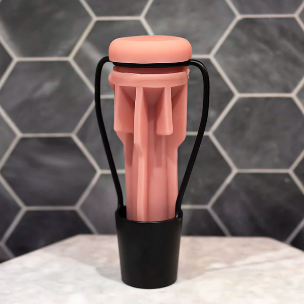 - Después de limpiar la funda de tu Fleshlight de tamaño completo, coloque la cubierta en el estante de secado en seco Fleshlight Stand Dry.